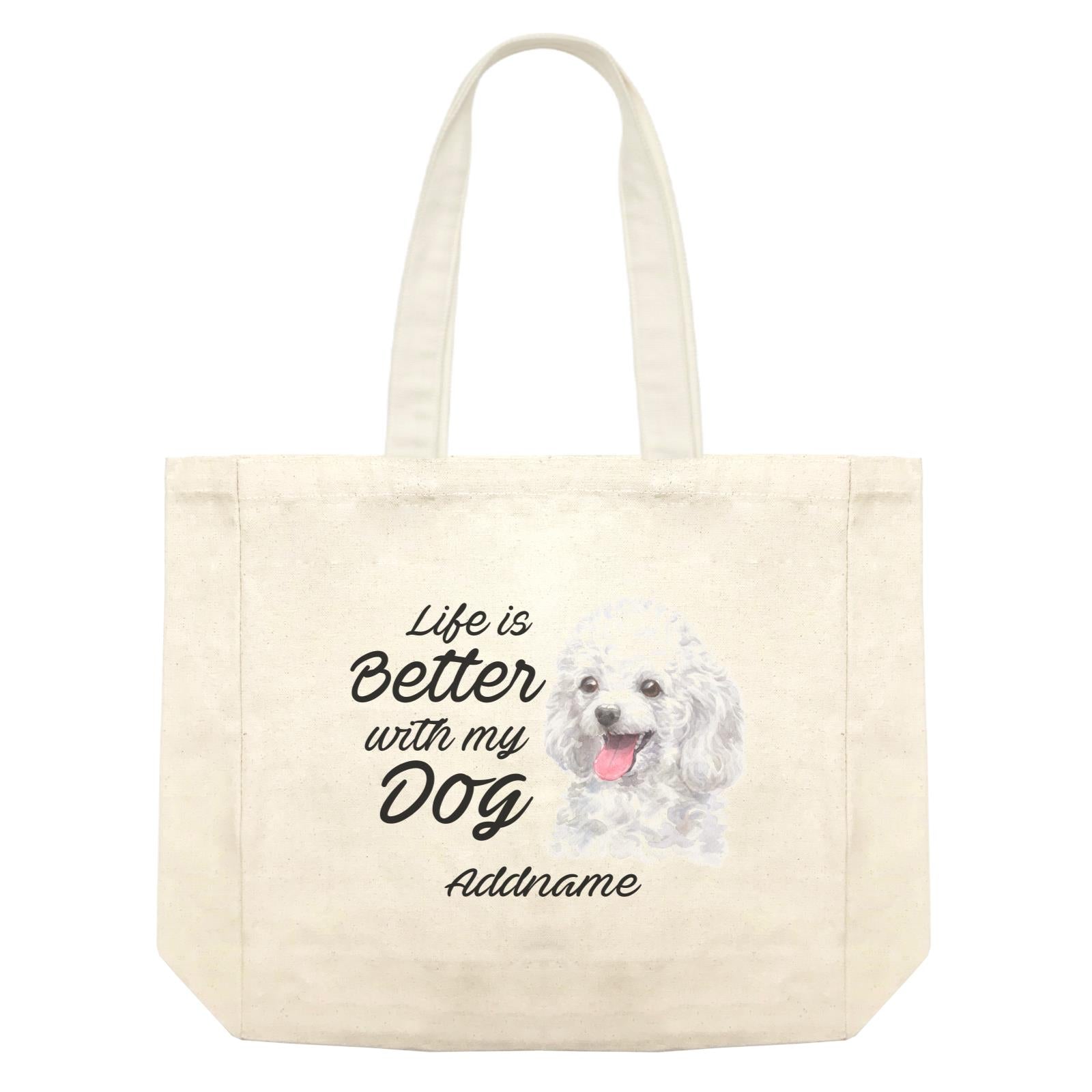 Watercolor Life is Better With My Dog Poodle White Addname Shopping Bag