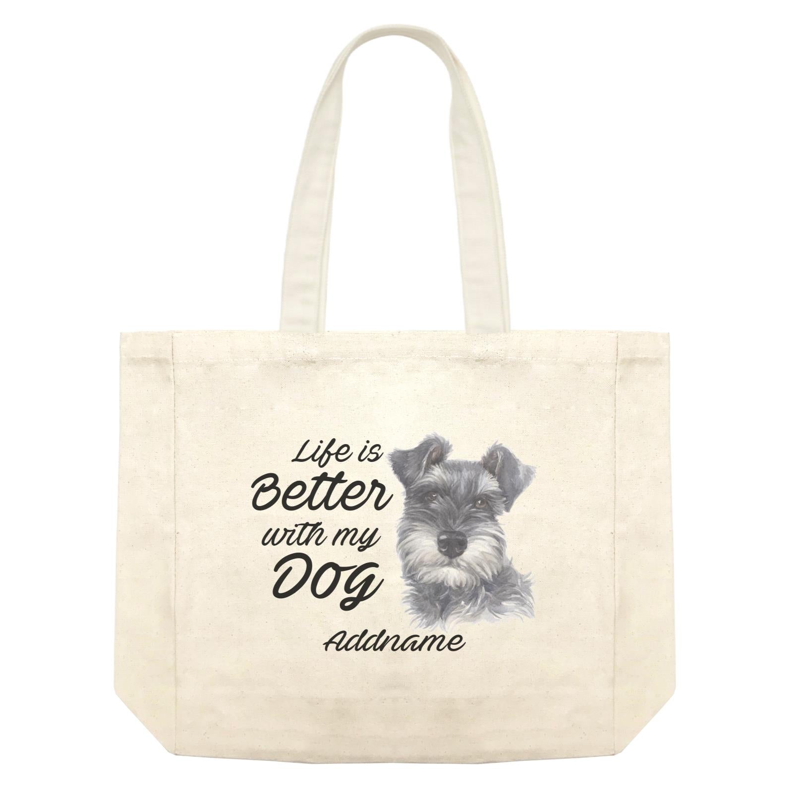 Watercolor Life is Better With My Dog Schnauzer Black Addname Shopping Bag